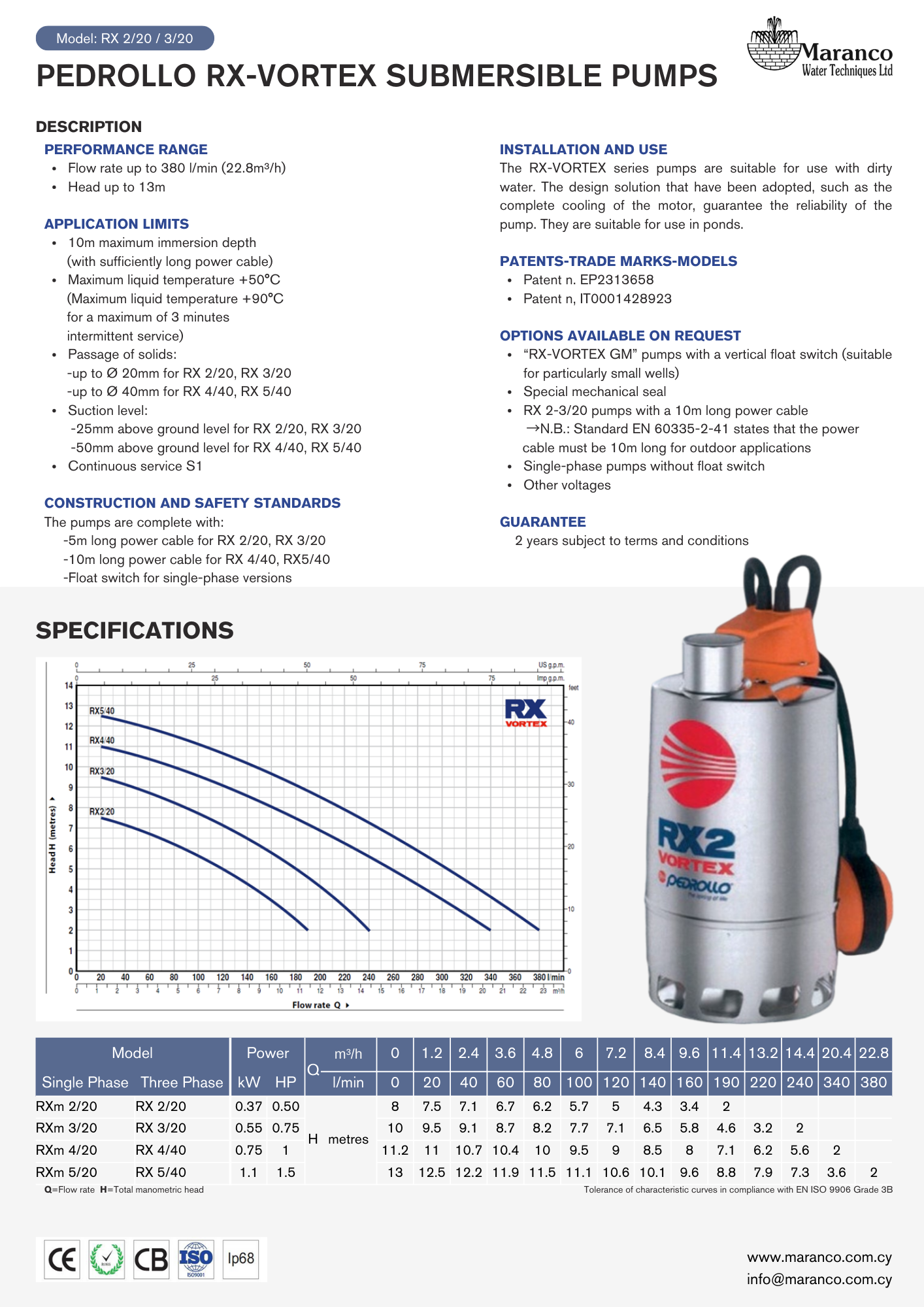 Home / Fountain Products / Pumps / Submersible / PEDROLLO RX-VORTEX SUBMERSIBLE PUMPS – RX 2/20 / 3/20