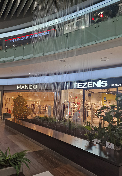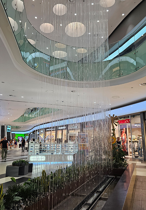 The project of a curtain fountain at Kings Avenue Mall in Paphos was created in 2013. Is a striking water feature where water floats smoothly in a continue thin sheet, resembling a curtain. Curtain fountains can be crafted using materials such as glass, stainless steel, or stone, often enhanced with LED lighting for a captivating visual effect. It is the design that is a popular choice for modern settings like spas, hotels, shopping malls and private residences.