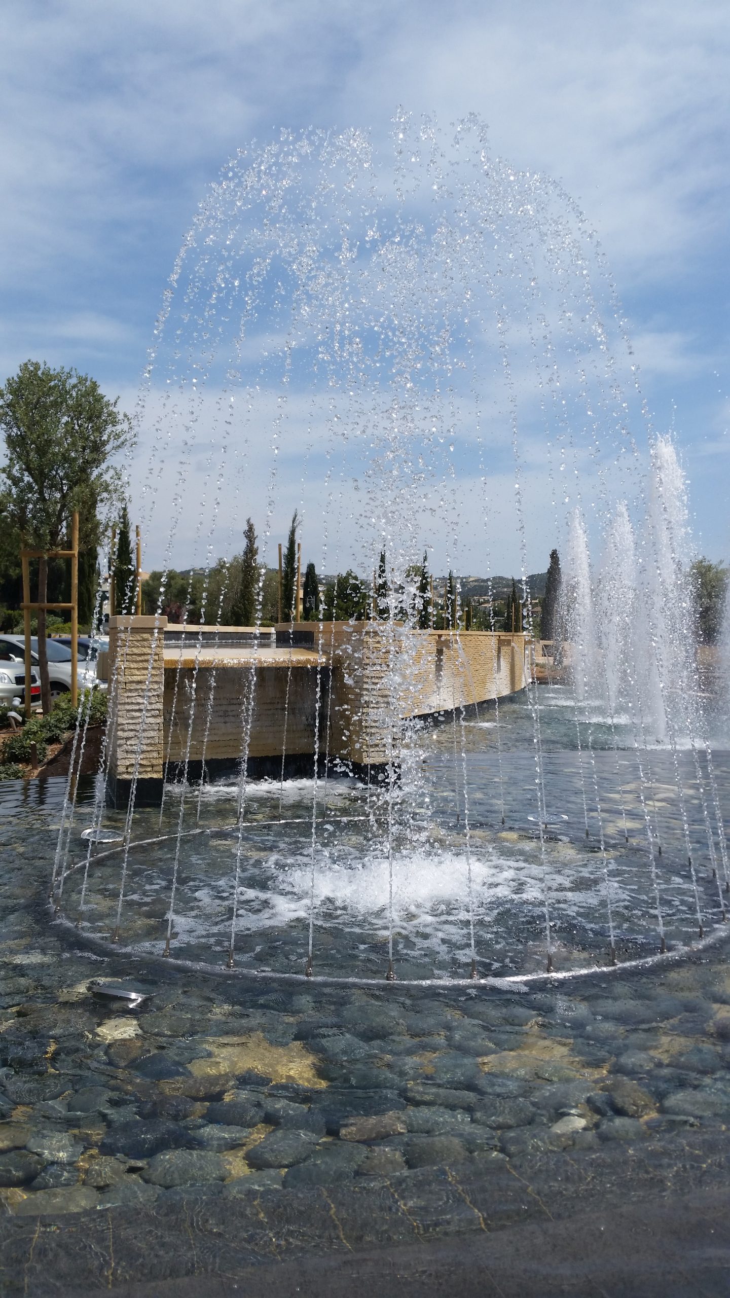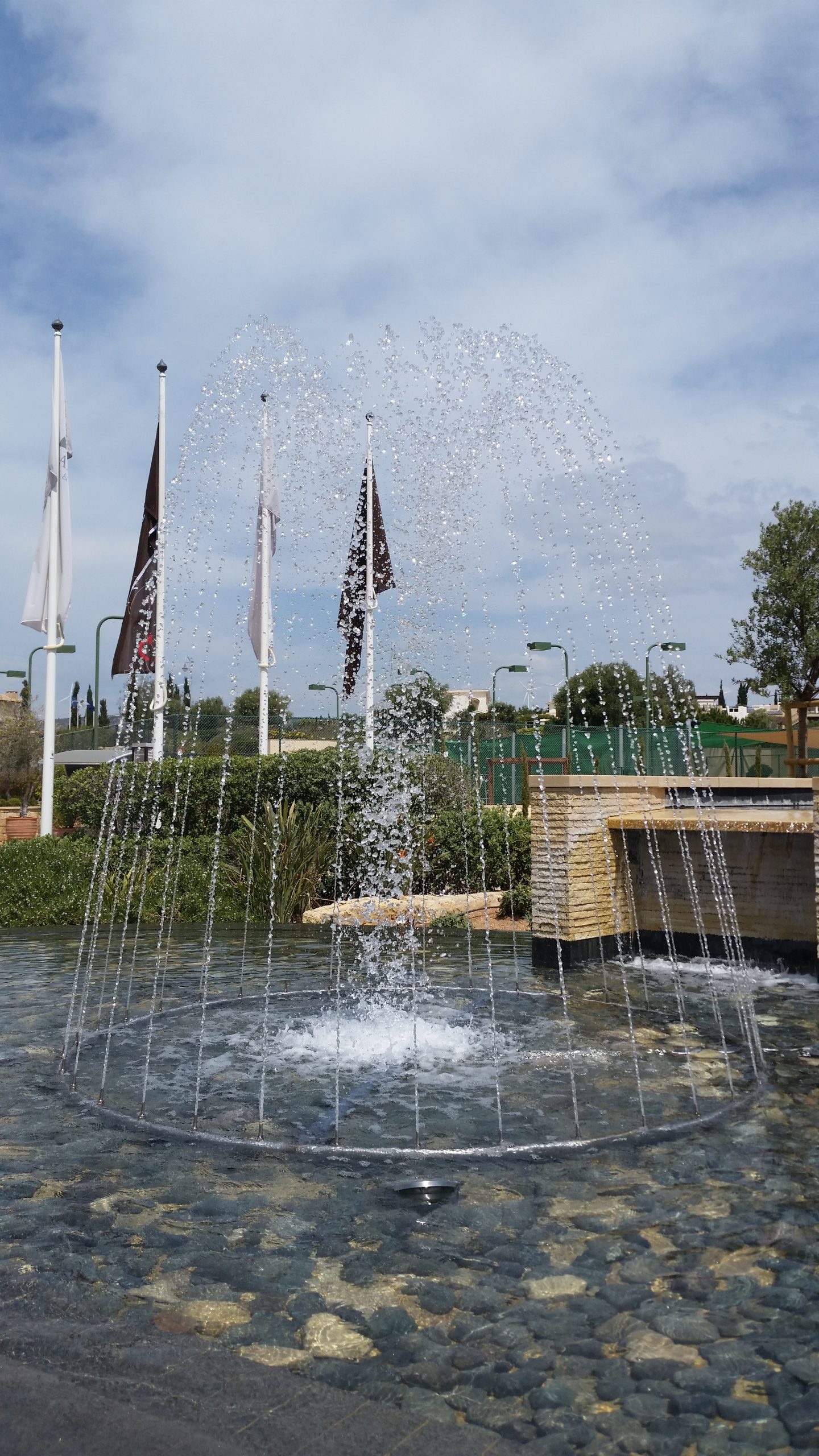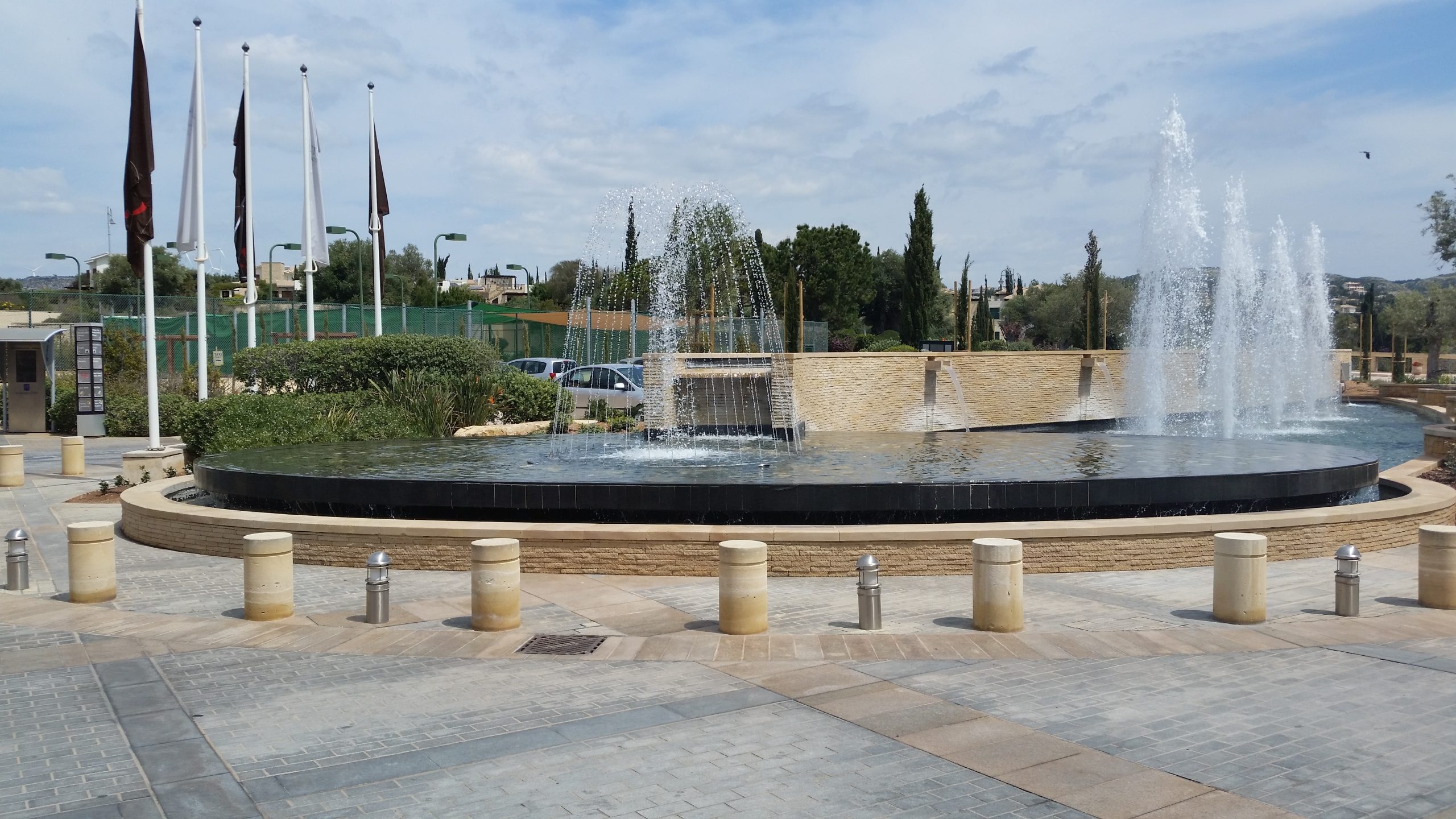 Two complex fountains with clear Jets and cascade Nozzles were constructed in the yard of Aphrodite Hills Hotel and Resort, in Paphos. A fountain with various types of jets is a captivating water feature that combines multiple water effects to create a dynamic and visually stunning display. It may include vertical jets shooting high into the air, arching laminar jets forming smooth and presiding arcs, mist jets creating a cloud-like ambience and cascade jets mimicking waterfalls or rippling streams.